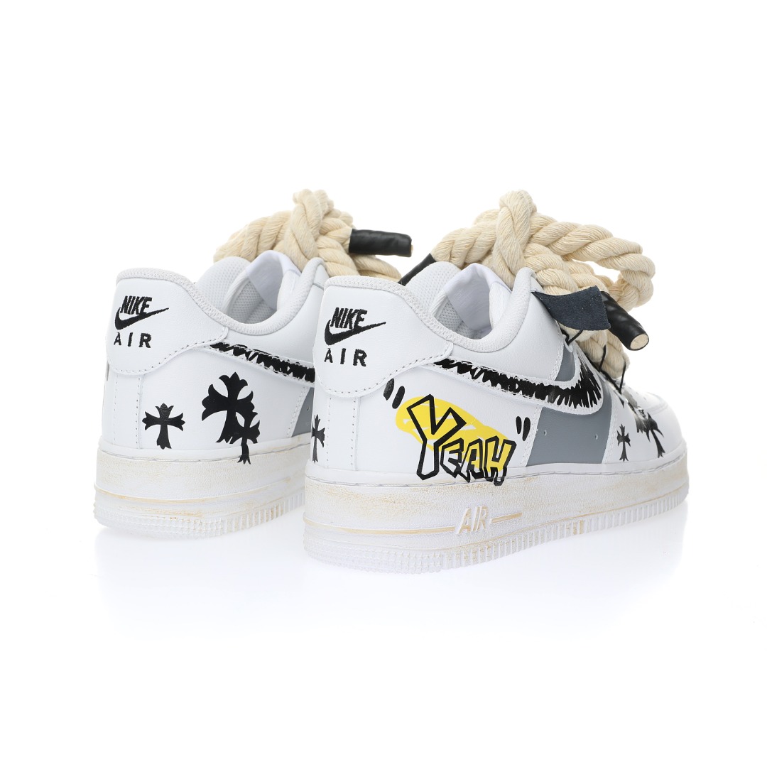 Men’s and women’s shoes with real standard half size #??????????#Using hard grained cow-cut leather upper material#Built-in full-palm AirSole air cushion creative custom color matching, Nike Air Force 1 07 LV8Cross/Smile” Air Force One No. 1 classic low top all-match casual sports shoes “white cross yellow smiling face thick rope” CW2288-111